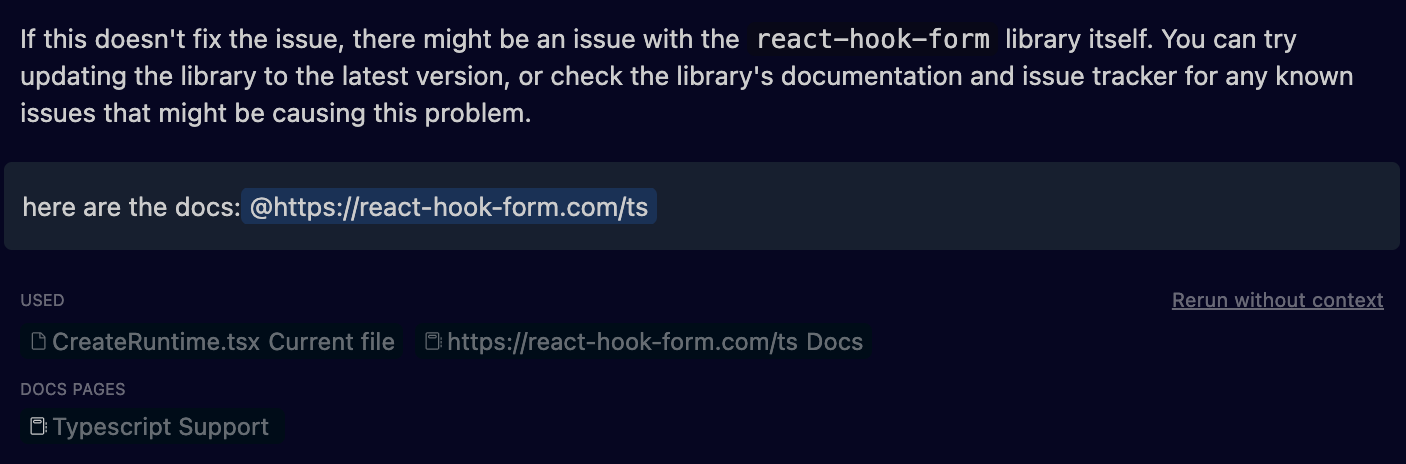 - You can @reference documentation, and BYO documentation by adding it. Cursor will index it.
